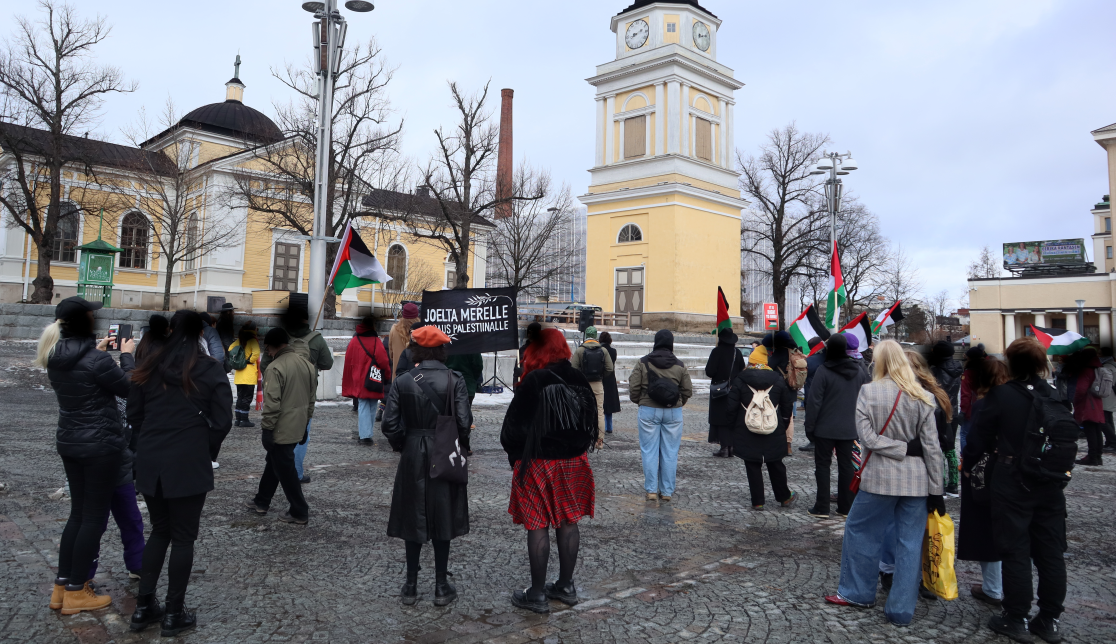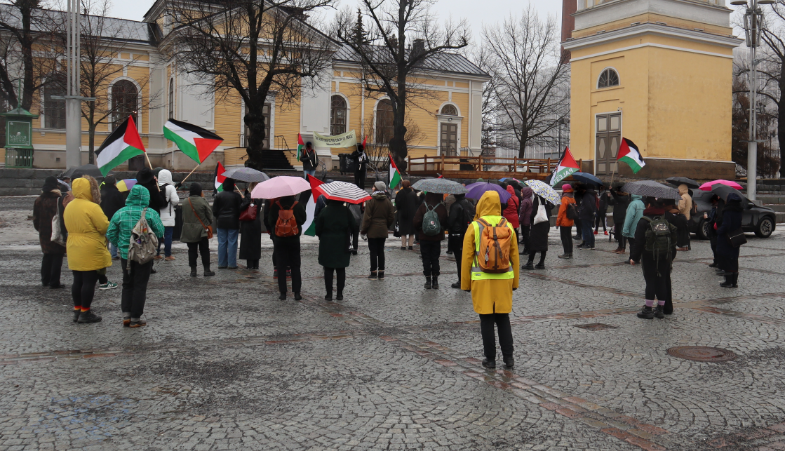 Mielenosoitukset Palestiinan kansan puolesta ovat jatkuneet Tampereella viikottaisina, kuten aiemminkin. Mielenosoituksessa 16.3. laskettiin kynttilöitä Gazan marttyyreille, ja tinkimättömän anti-imperialistisessa puheessa osoitettiin Suomen hallitsevan luokan yhteisen Israel-politiikan parantumattomana perustana oleva aineellinen etu. Internationalistinen velvollisuus Palestiinan kansan vastarintataistelun tukemiseen onkin käynyt painavammaksi suomalaisen imperialismin päätettyä osallistua Punaisellemerelle suuntautuvaan sotaretkeen. Mielenosoitusten lisäksi solidaarisuussanomaa on levitetty julistein, tarroin, lentolehtisin ja mm. erilaisissa keskustelutilaisuuksissa. Julkaisemme saamiamme kuvia mielenosoituksista 16.3. ja 23.3.