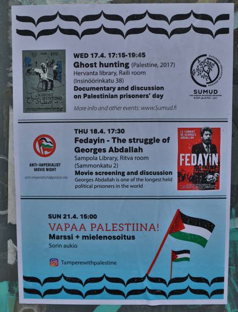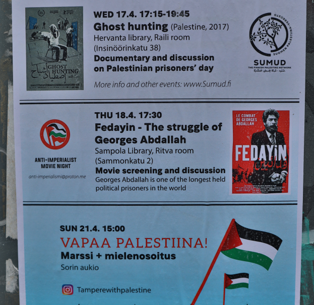 Torstaina 18.4. klo 17.30 anti-imperialistinen elokuva-ilta; Fedayin – The Struggle of Georges Abdallah, Sampolan kirjasto (Ritva-sali).