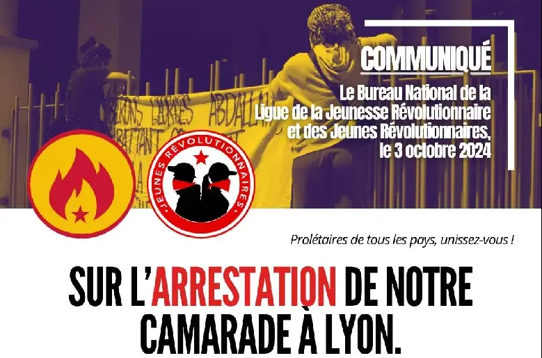 Julkaisemme suomennoksen perustuen Red Heraldin epäviralliseen käännökseen Ligue de la Jeunesse Révolutionnairen and Jeunes Révolutionnairesin lausunnosta. Keskivikkona 2. lokakuuta kello 4:30 yöllä yksi militanteistamme joutui poliisin, joka oli pukeutunut siviilivaatteisiin, väliintulon kohteeksi kotitalonsa edessä ja hänet otettiin samantien vangiksi. Tämän vangitsemisen syy on selvä, hän on poliittinen aktivisti. Toverimme rikos on ilmiselvä, hän puolustaa Palestiinaa, … Jatka artikkelin Ranska: Lyonissa pidätetystä toveristamme lukemista