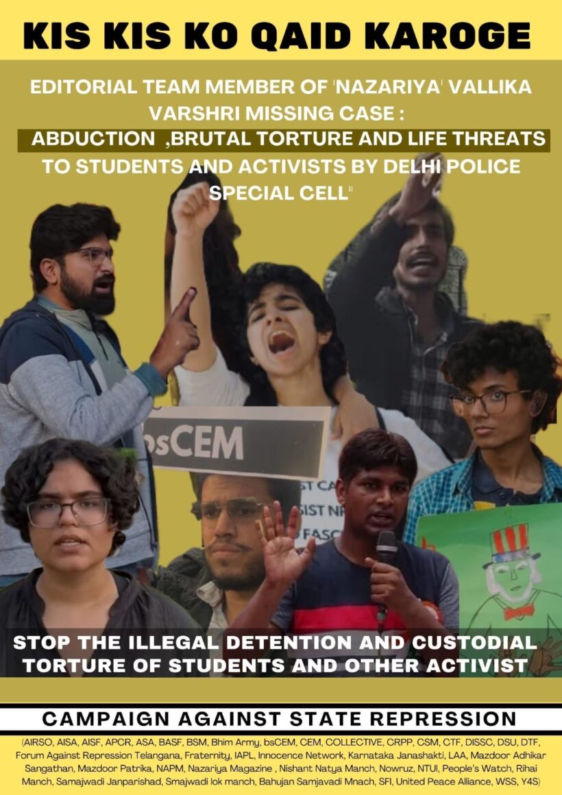 Kyseessä oleva Delhin poliisin erikoisjoukko on osa “terrorismin vastaista” puolisotilaallista joukkoa, jonka pääasiallinen tehtävä on tuhota kansanliike ja Intian Kommunistisen Puolueen (maolaisen) johtama kansansota. Tämän nimissä poliisi hyökkää jopa täysin demokraattisten järjestöjen ja aktivistien kimppuun kasvavalla laittomuudella. Valtiollisen repression vastainen kampanja (CASR) varoittaa, että nämä sieppaukset ovat osa suurempaa, koordinoitua ja harkittua offensiivia, Surajkundin juonta, jonka tarkoitus on normalisoida poliisin repressio ja kriminalisoida joukkojen taistelua. Vallankumouksellinen Opiskelijarintama (RSF) on ilmoittanut, että sieppaustapaukset eivät ole sen vähempää kuin täysin avoin sodanjulistus niitä opiskelijoita ja joukkoja vastaan, jotka uskaltavat kyseenalaistaa brahmanistisen hindutvahallituksen.