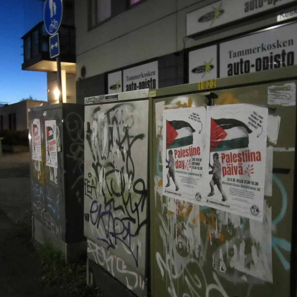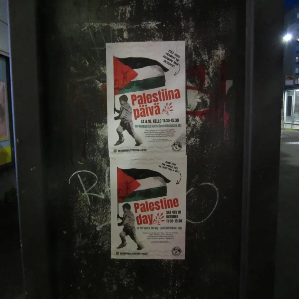 Maanantaina 22. syyskuuta jaoimme lentolehtistä solidaarisuudessa Nepalin kansan kapinalle. Myös mainosjulistetta Palestiina-päivälle (4.10.) on alettu levittää.