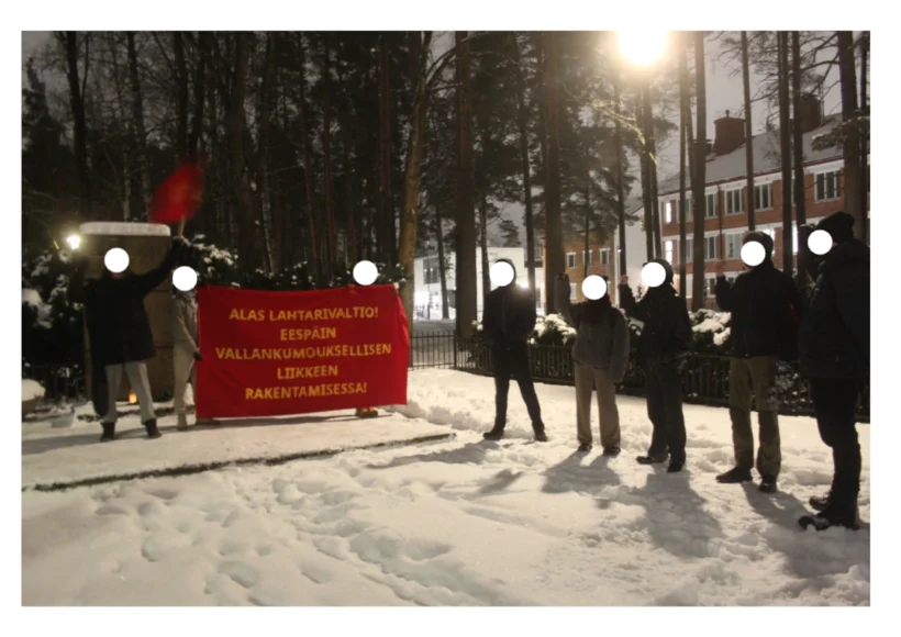 “Aloitimme laulamalla Kansainvälisen, minkä jälkeen kuulimme julkilausumamme päivää varten. Julkilausuman jälkeen kuulimme myös runon, jossa käsiteltiin samoja kysymyksiä. Lopuksi lauloimme Punakaartin marssin ja huusimme huutoja mm. kansansotien ja Suomen Kommunistisen Puolueen rekonstituoinnin puolesta.