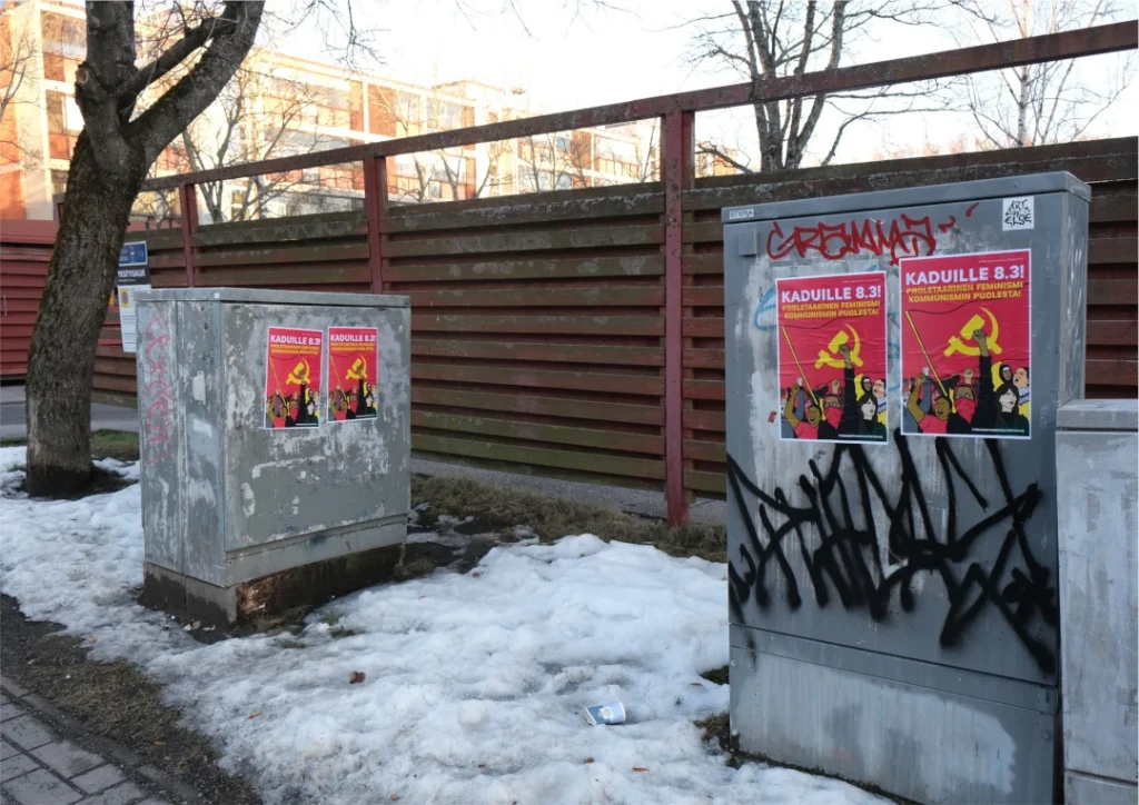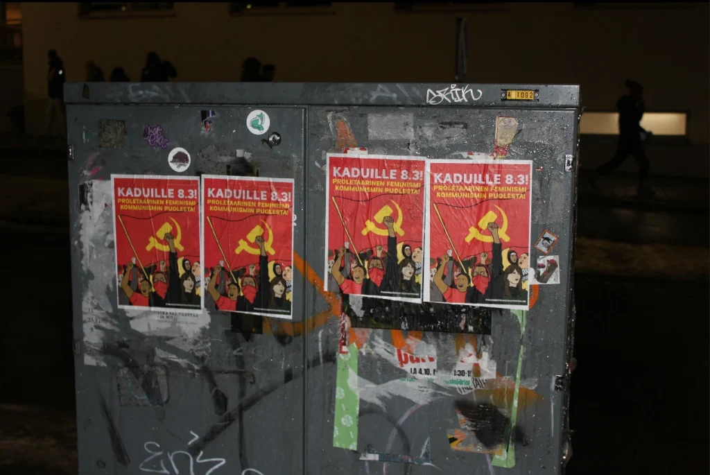 Naistenpäivän kynnyksellä oli myös havaittu useita proletaarista feminismiä esiin nostavia julisteita ainakin Ylioppilaskylässä ja Varissuolla.