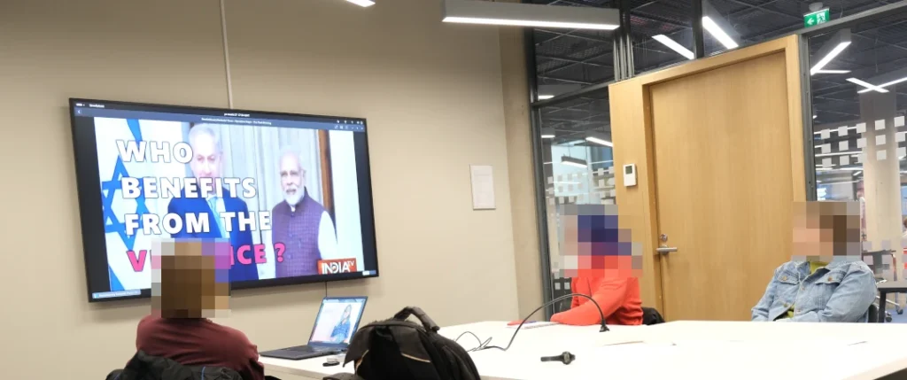 Kansainvälistä toimintapäivää edeltävänä päivänä järjestimme eri järjestöjen välisen kokouksen. Ensin pidimme esitelmän näistä samoista aiheista, minkä jälkeen katsoimme videon maolaisten sissien elämästä Intiassa (India’s Red Tide – SBS Dateline) ja myös videon operaatio Kagaarista (Operation Kagar – The Final Warning – Revolutionary Students’ Front). Kokoukseen osallistui yhteensä neljä eri järjestöä, ja jokaisen välillä vallitsi yksimielisyys siitä, että olemassa on pohjaa ja potentiaalia yhteistyölle sekä Intian tilanteessa että muissa anti-imperialistisissa kysymyksissä. Kokouksessa puhuttiin myös tulevasta Anti-imperialistisen Liiton perustavasta konferenssista, mikä kokouksen pääaiheen tavoin nosti tietoisuutta ja herätti mielenkiintoa.”
