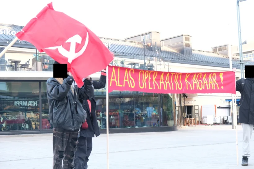 “Kansainvälisenä toimintapäivänä operaatio Kagaaria vastaan 28.3. järjestimme mielenosoituksen Helsingin keskustassa Narinkkatorilla. Aluksi luimme